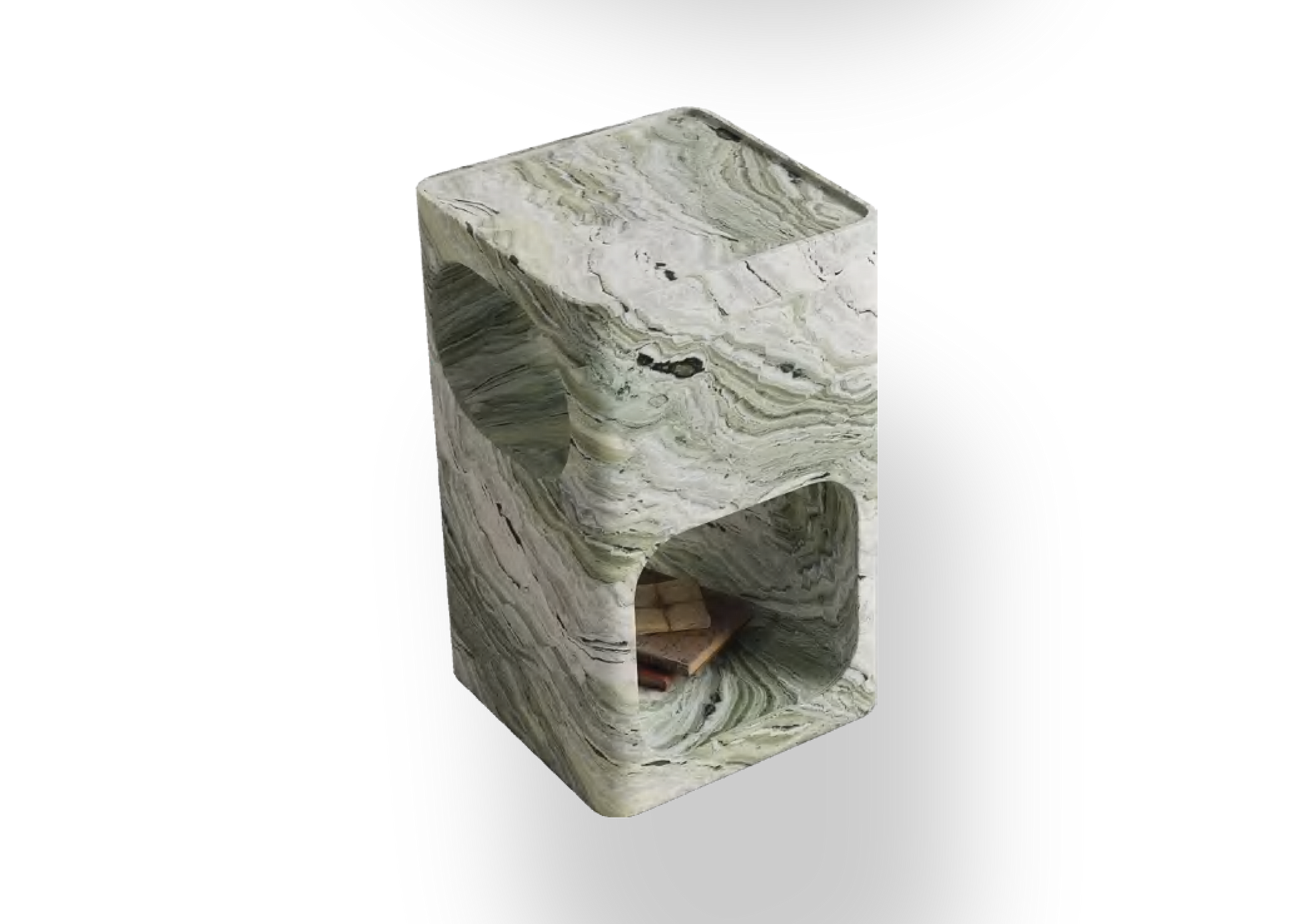 Strato is a celebration of balance and precision. Its multi-tiered composition plays with height and form, creating a dynamic sense of movement while maintaining a grounded, sculptural presence. Each tier catches light differently, revealing the marble’s rich personality from every angle.